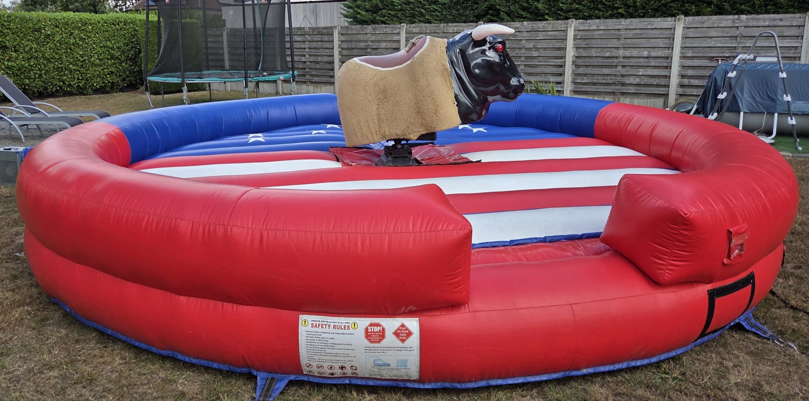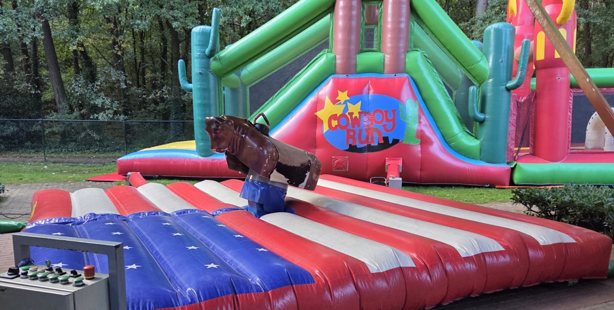 Fun voor iedereen, trek zo hard je kan en gooi je vriend(in) van de stier ! Hoe lang kan jij blijven zitten?