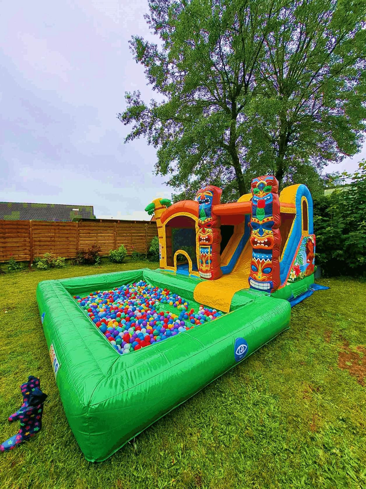 Bij de huur van dit springkasteel vragen we om het water of de balletjes eruit te halen en de balletjes terug in de zakken te doen, anders is er een meerkost.