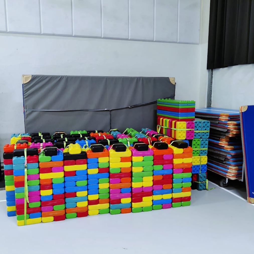 De blokken zijn binnen en buiten te gebruiken en makkelijk schoon te maken, vermijd het gebruik op nat gras of op zand.