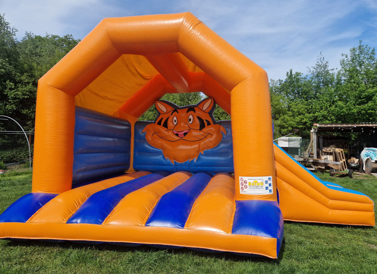 Beleef en dol dwaze dag met 'Smily de tijger' door erop te springen en af te glijden!